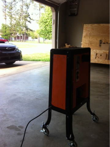 I painted the plywood pieces i made to enclose the base orange, since i had some orange paint left over from when i painted my tablesaw enclosure pieces.